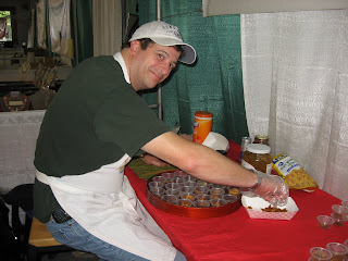 Despite the event name, I found there were mostly wine vendors and very few food vendors. I was a bit disappointed at the relatively low showing on the food vendor side but I did have a fair number of folks come by and sample the products. Several even make purchases. Though my assigned spot was less than ideal (I received relatively low traffic because the booth was in an underused building), I am planning to give it another go next year and I'm optimistic that Baron's International Kitchen will do even better. Below you can view pictures of me at the booth and my hubby Josh making samples.